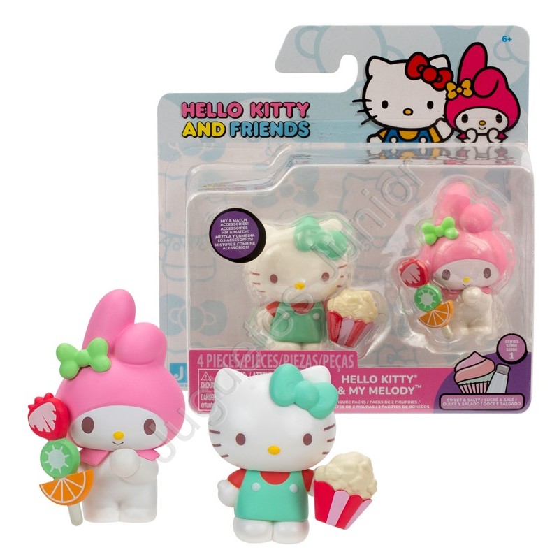 Pack con 2 Figuras de Hello Kitty con uno de sus amigos y 2 complementos