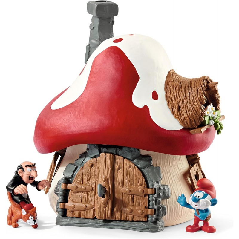 Preciosa Casita Seta de Los Pitufos con 2 Figuras, Gargamel con Azrael y papa Pitufo