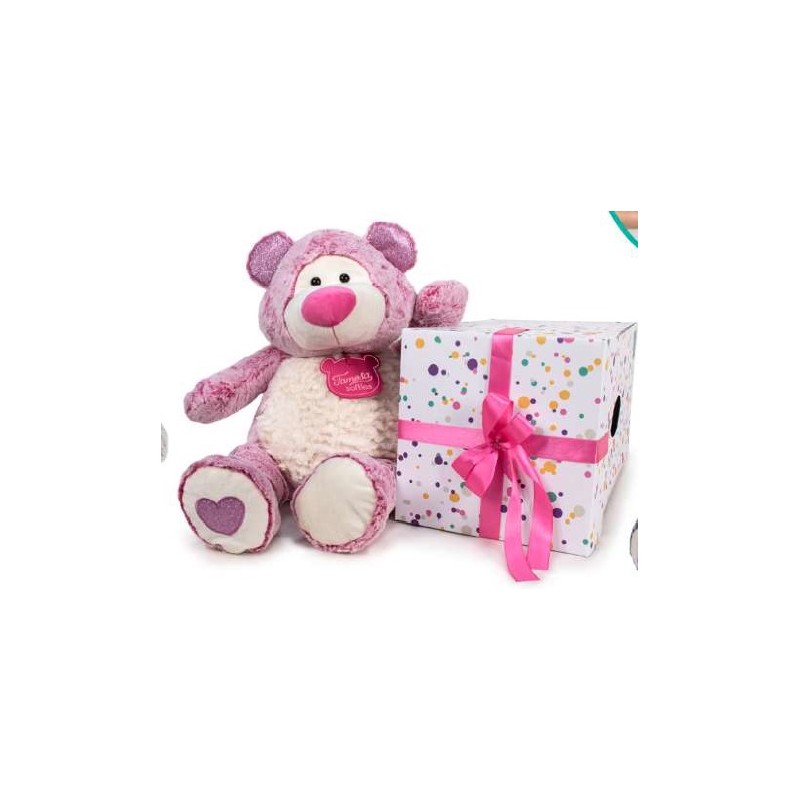 Gran formato. Entrañable Peluche Oso en caja de regalo mostrando las patas y manos